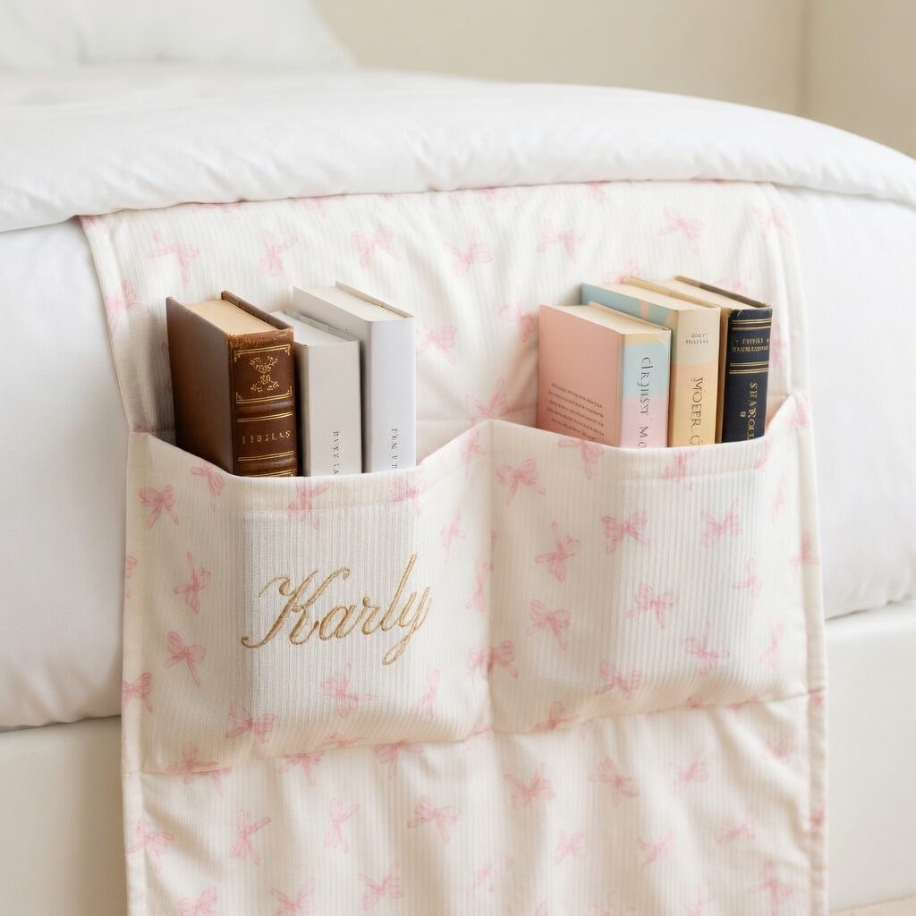 Bed bags are designed to tuck under your mattress, couch or a chair. They provide easy access to books, glasses, laptops or remotes or anything else you may need.Bed bags can be customized in any available fabric or color. They are incredible versetile and make fantastic gifts.Simply chose one of the available fabrics or customization.